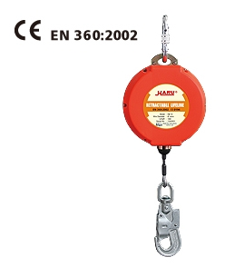 手搖卷揚式防墜器在使用時,防墜器應懸掛在使用者上方的堅固結構物上,以確保安全繩始終處于張緊狀態。防墜器采用雙鎖止裝置,可以穩定地鎖止安全繩,防止因傾斜作業下墜時搖擺幅度過大而發生碰撞。防墜器與安全帶連接使用,在人體移動時,防墜器的繩索會跟隨人體的移動自由伸縮,不會對工人造成任何牽掛感。